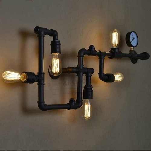 Aplik Retro Gotik Tarz Su Borusu Manometre Beş Ampül Kör Tapa