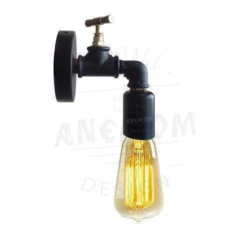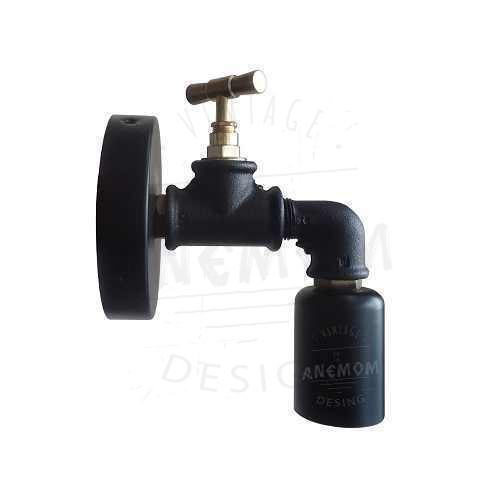 Aplik Su Borusu Duvar Aydınlatma Retro Tarzı Musluk Çeşme Görünümlü Siyah Metal Duylu
