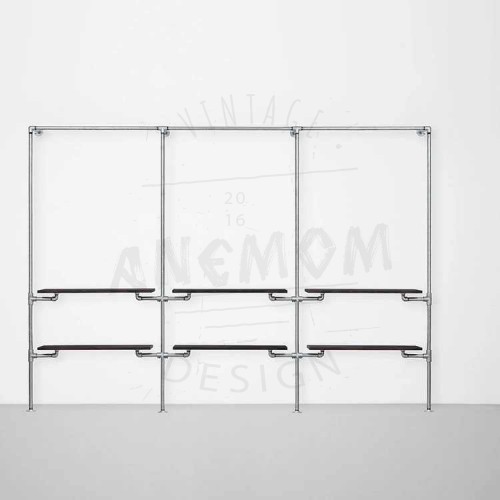 Elbise Askı ve Rafı Butik Mağaza Konfeksiyonlar İçin Altı Raflı Gardrop Duvar Tipi Su Borusu Retro Tarz