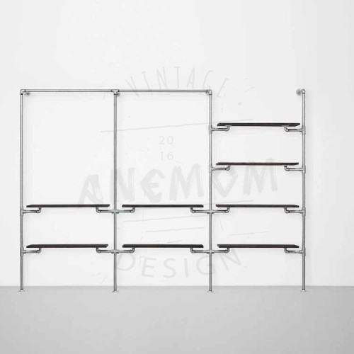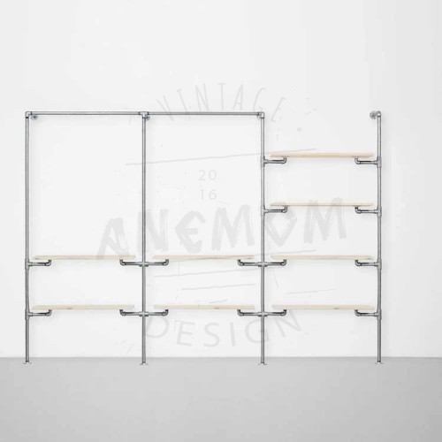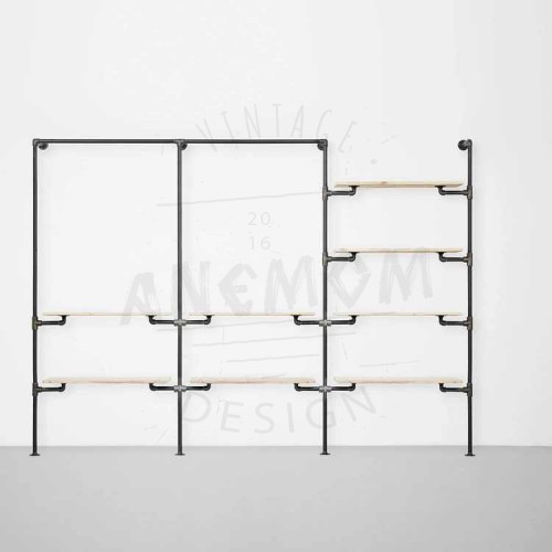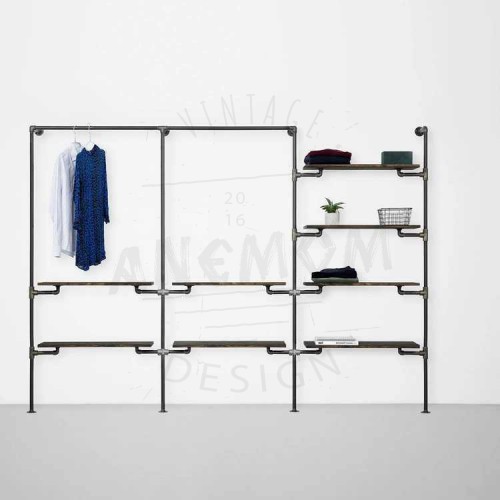 Elbise Askı ve Rafı Butik Mağaza Konfeksiyonlar İçin Sekiz Raflı Gardrop Duvar Tipi Su Borusu Retro Tarz