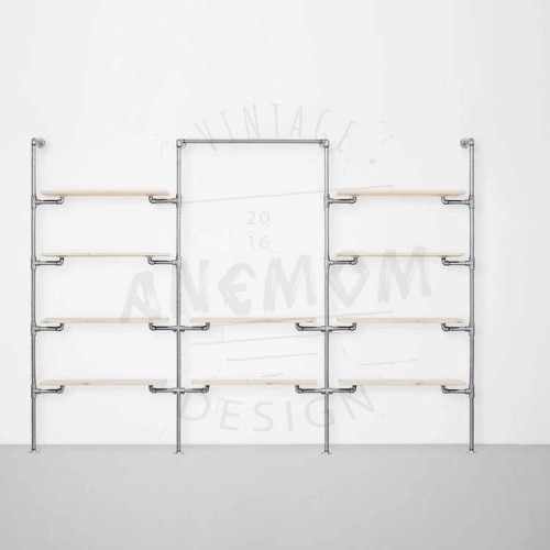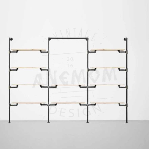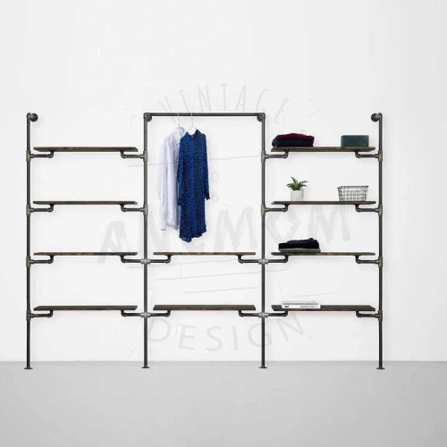 Elbise Askılığı Portmanto Üç Bölümlü Dört İki Dört Yan Yana Raflı Gardrop Duvar Tipi Su Borusu Retro Tarz