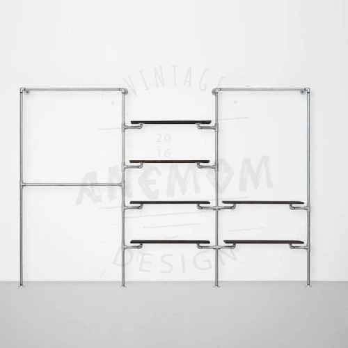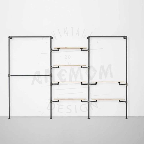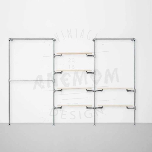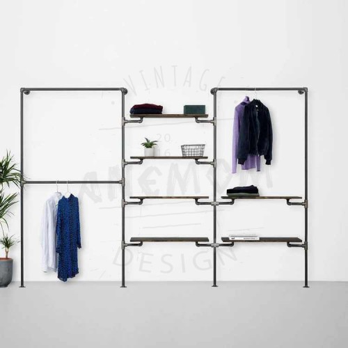 Elbise Askılığı Portmanto Üç Bölümlü Dört İki Yan Yana Raflı Gardrop Duvar Tipi Su Borusu Retro Tarz