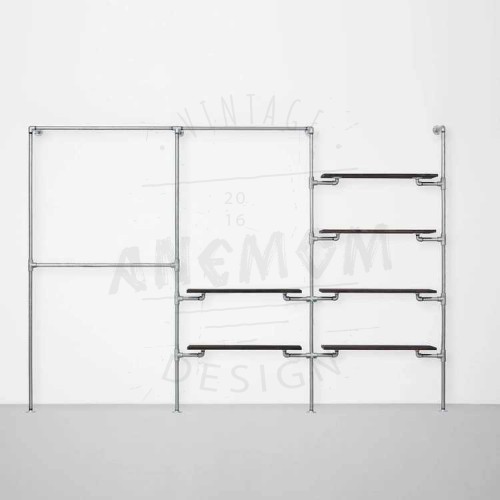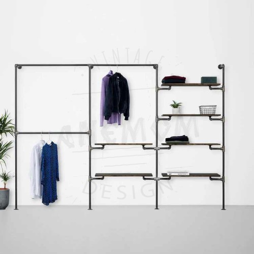 Elbise Askılığı Portmanto Üç Bölümlü İki Dört Yan Yana Raflı Gardrop Duvar Tipi Su Borusu Retro Tarz