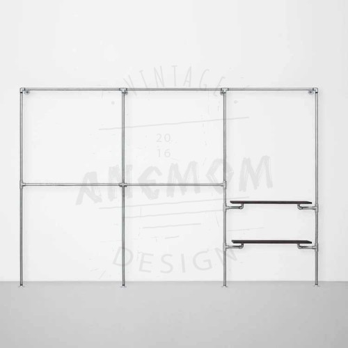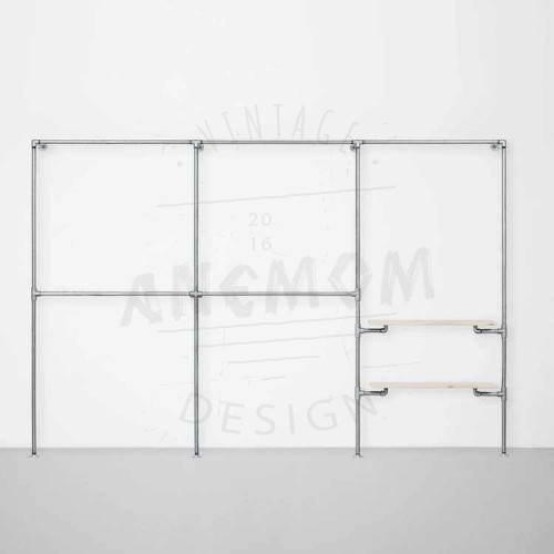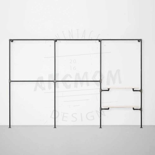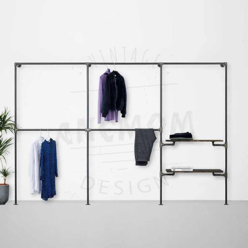 Elbise Askılığı Portmanto Üç Bölümlü İki Raflı Gardrop Duvar Tipi Su Borusu Retro Tarz